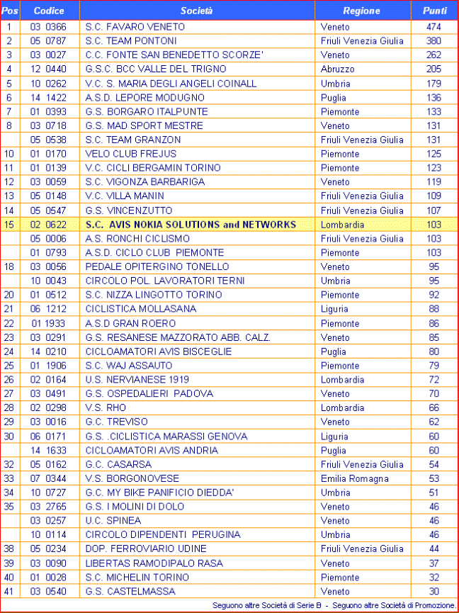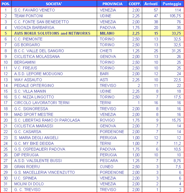 CLASSIFICA CICLORADUNO CAMPIONATO ITALIANO SOCIETA'MONTECASTRILLI (TR) 7 SETTEMBRE 2014